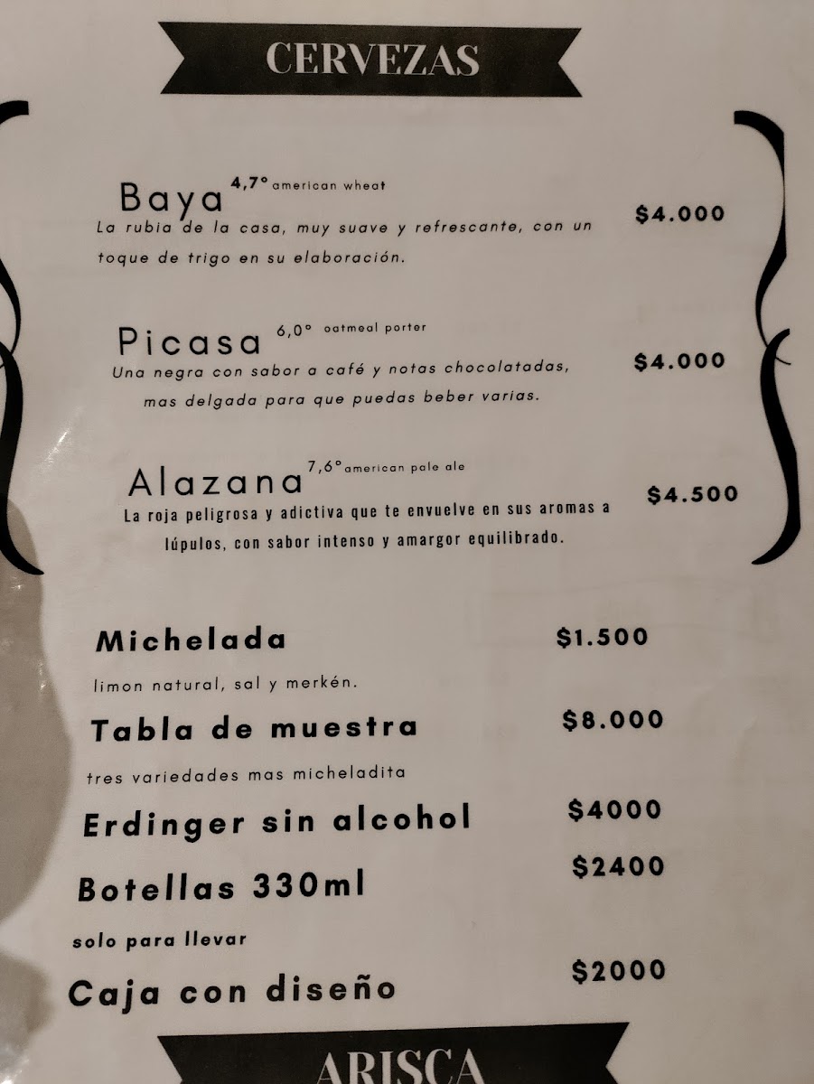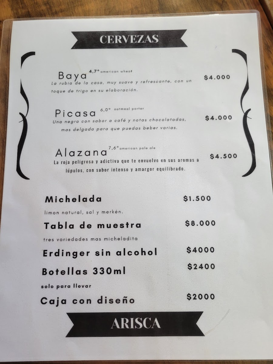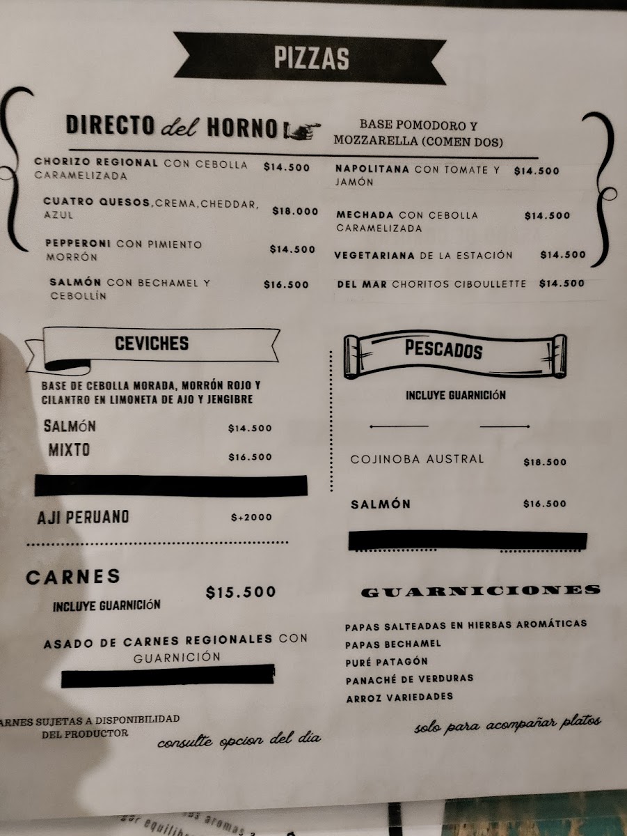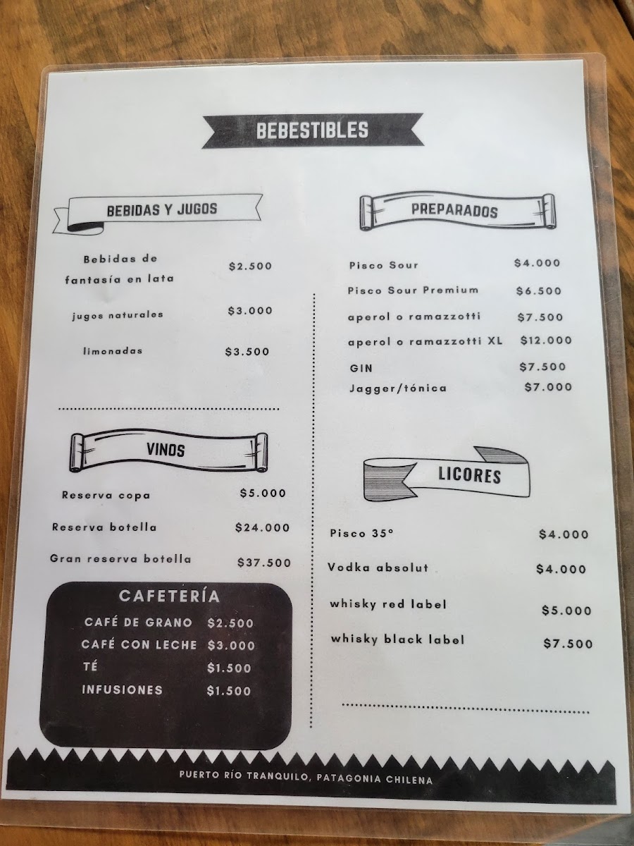 The menu at Restaurant Cerveceria Rio Tranquilo feels like a confident summary of local flavors, comfort food, and casual creativity, offering something satisfying across drinks, mains, and lighter options. The beverage selection immediately stands out with Cerveza Artesanal Rubia Y Roja, Beer Flight, Aperol XL, Mojito Calafate, and Cerveza Artesanal Arisca En Michelada, setting a relaxed, social tone that pairs naturally with the food. On the savory side, hearty dishes like Lomo, Cazuela de Carne Vacuna, and Salmón A Lo Pobre highlight a rustic, filling style, while seafood is well represented through Ceviche Mixto and Ceviche de Champiñón, balancing freshness with bold seasoning. Pizza lovers are clearly well cared for, with options such as Pizza Mechada, Pizza de Salmón, Pollo Pizza, and the generously named 1pizza Mechada Y Cebolla Caramelizada Y 1 2 Morilla, all reinforcing the kitchen’s focus on rich toppings and comforting combinations. For those seeking lighter or plant-forward choices, Ensalada del Huerto, Ensalada Chilena, Lasagna Vegetariana, and the pairing-friendly Pizza Y Ensalada provide welcome variety without feeling like an afterthought. The sandwich-style classics Churrasco Completo Y Churrasco Vegetariano round out the menu with familiar Chilean favorites that fit perfectly into the restaurant’s casual, satisfying identity. Taken as a whole, the menu feels cohesive and intentional, blending drinks, pizzas, seafood, meats, and vegetarian dishes into a lineup that encourages sharing, tasting, and returning for different combinations on each visit.